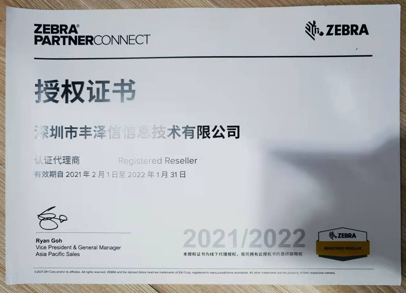 斑馬授權(quán)證書