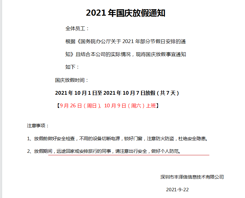 2021年國(guó)慶放假通知