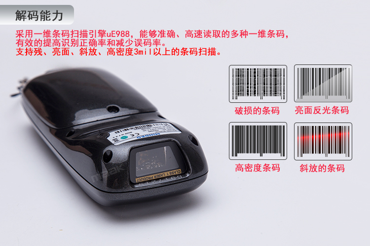 重量輕、體積小,可以輕松放入口袋,攜帶方便。符合人體工學(xué)的設(shè)計(jì),握感舒適。配備智能輔助光照調(diào)節(jié)算法,可適應(yīng)不同光照強(qiáng)度的環(huán)境。360°任意角度識(shí)讀條碼,超強(qiáng)糾錯(cuò)能力,識(shí)讀速度快。兼容Apple iOS、Android OS、Windows OS,可作為PC、智能手機(jī)、平板、PDA的輸入設(shè)備,實(shí)時(shí)數(shù)據(jù)傳輸。