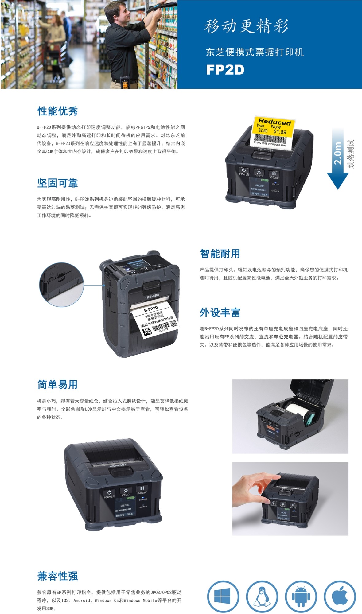 東芝致力于便攜式打印機(jī)領(lǐng)域的創(chuàng)新技術(shù)與應(yīng)用開發(fā);B-FP2D系列專為用戶體驗而設(shè)計,堅固緊湊的機(jī)體結(jié)構(gòu),輕巧、易于操作;擁有2英寸便攜機(jī)的打印速度和電池性能,滿足多樣性的應(yīng)用場景。