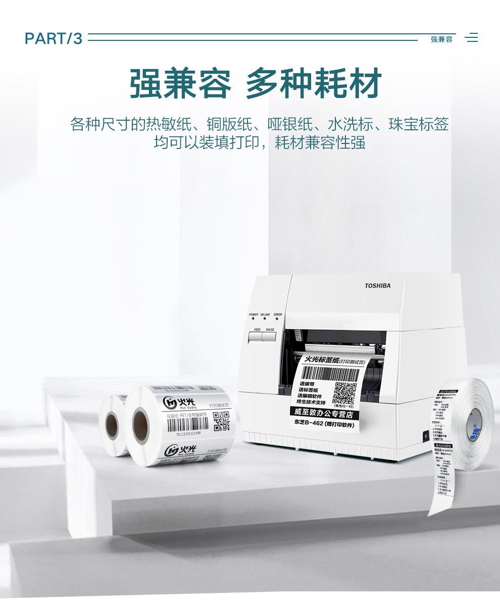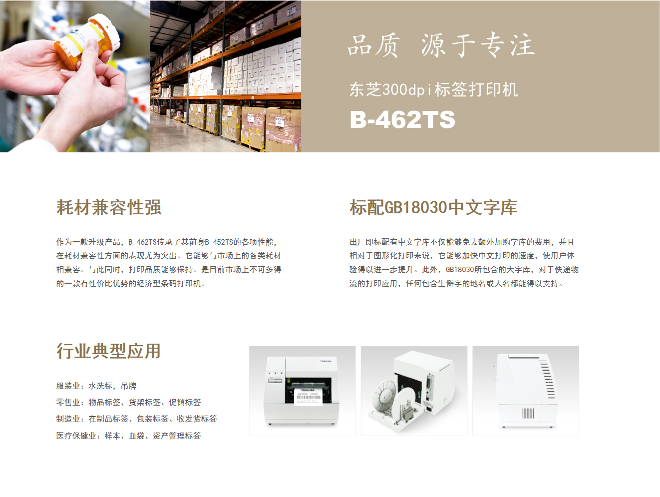 B-462TS傳承了前身B-452TS的各項性能,不僅能很好地與各類耗材兼容,還能確保高品質(zhì)的輸出效果,尤其是能夠滿足對水洗標及吊牌有較高品質(zhì)要求的客戶。另外,全新的B-462TS標配有GB18030中文字庫,其高性價比優(yōu)勢在眾多經(jīng)濟型打印機中更加突出。
