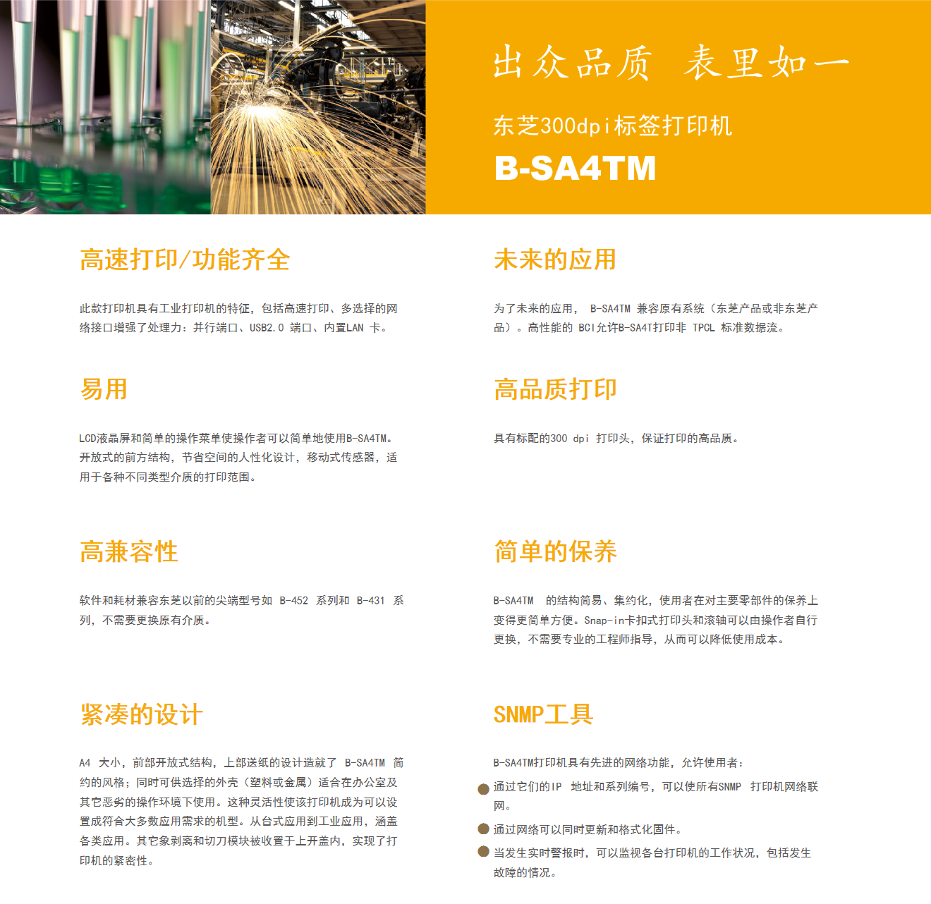 機(jī)器外形小巧、簡單易用,卻具有工業(yè)打印機(jī)功能完整、牢固耐用的特點。先進(jìn)的網(wǎng)絡(luò)功能,可支持現(xiàn)今主流的通訊端口,使用戶可以通過網(wǎng)絡(luò)對打印機(jī)進(jìn)行遠(yuǎn)程管理。人性化設(shè)計適用于安靜的辦公環(huán)境,高質(zhì)量的打印輸出和出色的功能保證,又同樣適用于重工業(yè)環(huán)境。在打印應(yīng)用方面,真正地提供了“解決方案”,成為全球公認(rèn)的品牌。