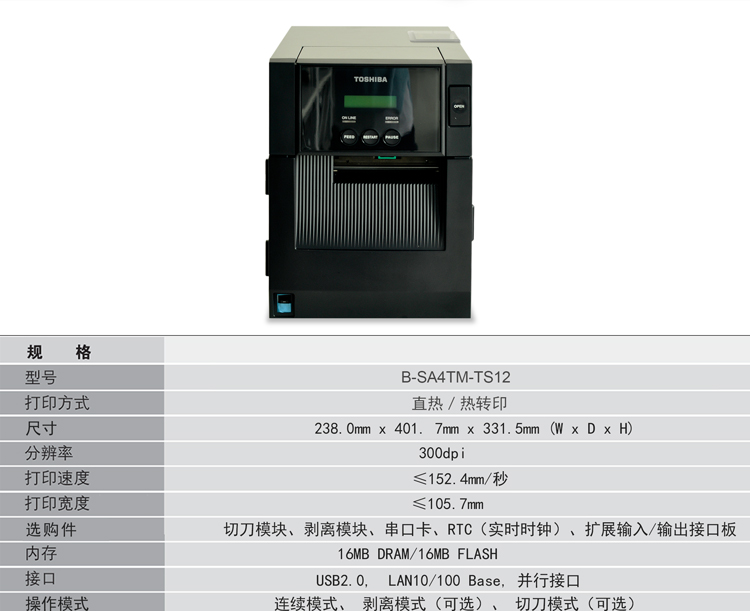 | 可選件 | 切刀模塊、剝離模塊、串行接口板、RFID 模塊、擴(kuò)展輸入/輸出接口板、實時時鐘 |