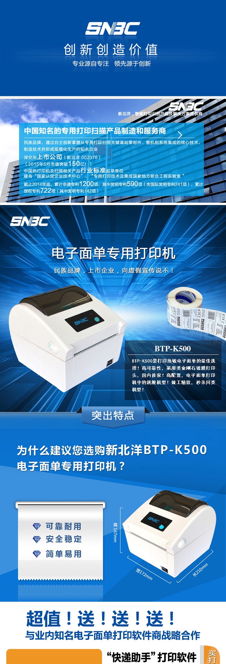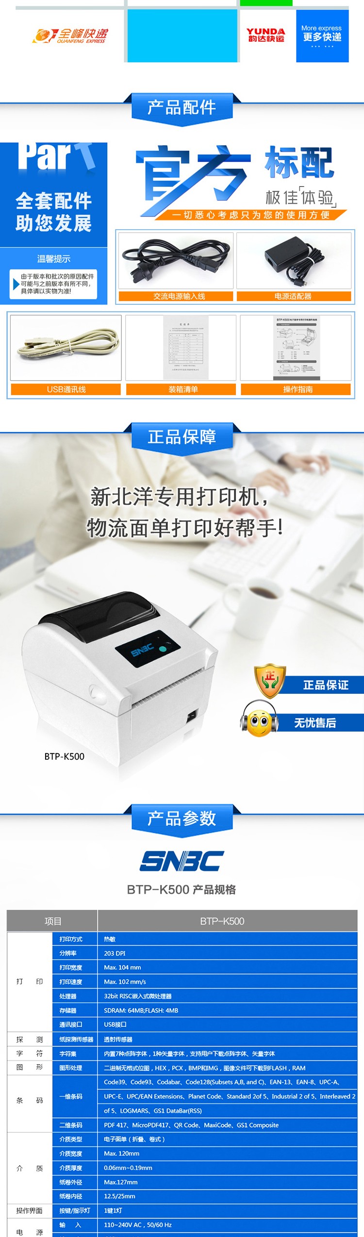 北洋/新北洋BTP-K500 熱敏電子面單打印機